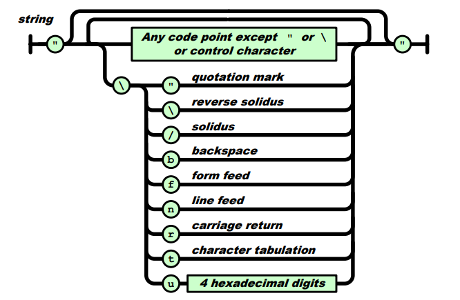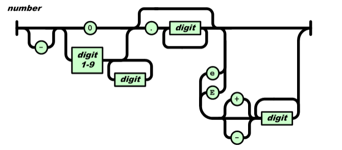 JSON 标准 ECMA-404 采用图的形式表示语法,可以更直观地看到解析时可能经过的路径: