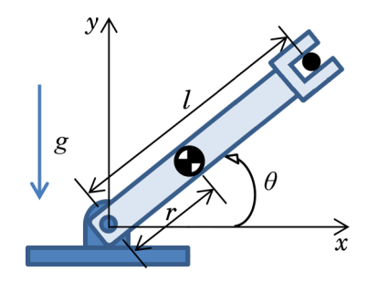 Realize o controle da posição do manipulador robótico abaixo usando o método de Linearização por Realimentação, sabendo que a sua equação de movimento é dada por