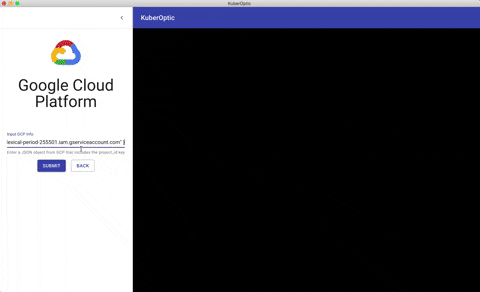First create a google developer account for Google Cloud Platform (GCP) and start a project through GCP. Find your credentials on Google and then enter them with the corresponding time zone on the upload page. The credentials you get from Google should be in a JSON in the form of GOOGLE_APPLICATION_credentials. Your deployed cluster through GCP will now be visualized in real time. Prequisites