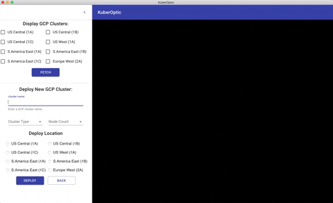 KuberOptic provides a tool that allows developers to visualize the structure of their clusters, including the nodes, pods, and containers. At each level of a cluster, KuberOptic gives you monitoring analytics that describe the health of your application. KuberOptic also allows you to deploy new clusters onto the cloud.