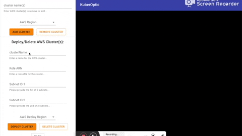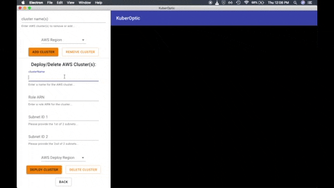 To deploy a new cluster, enter the name of the new cluster, your roleARN, two subnet IDs, and the region in which you wish to deploy, then click "Deploy Cluster." Please note that it will take a few minutes for your cluster to be created, at which point you can retrieve it for display.