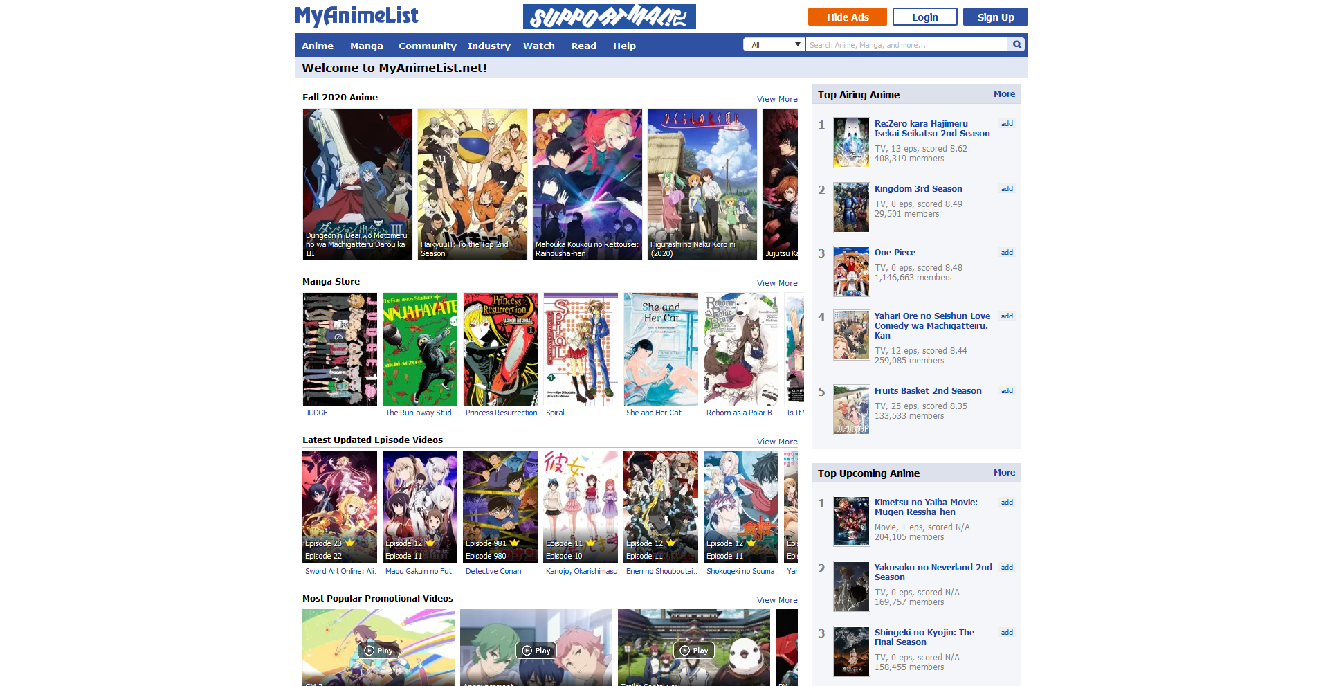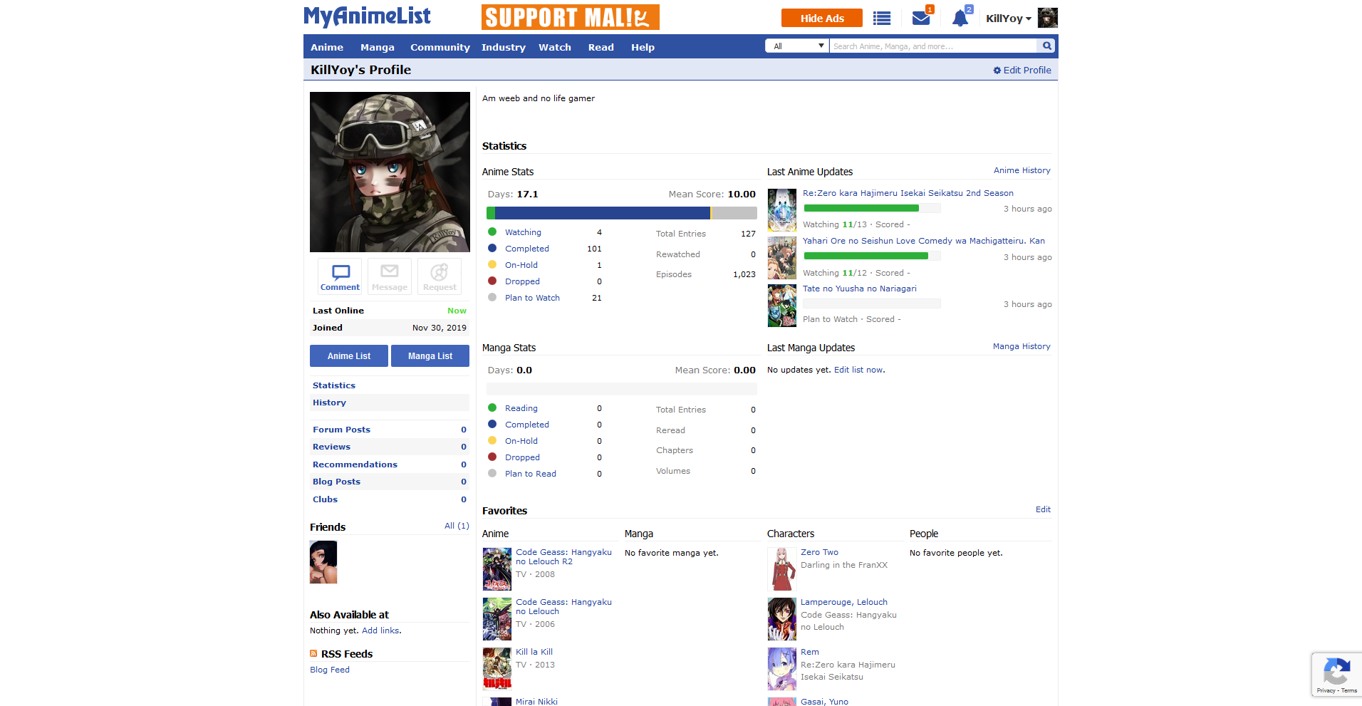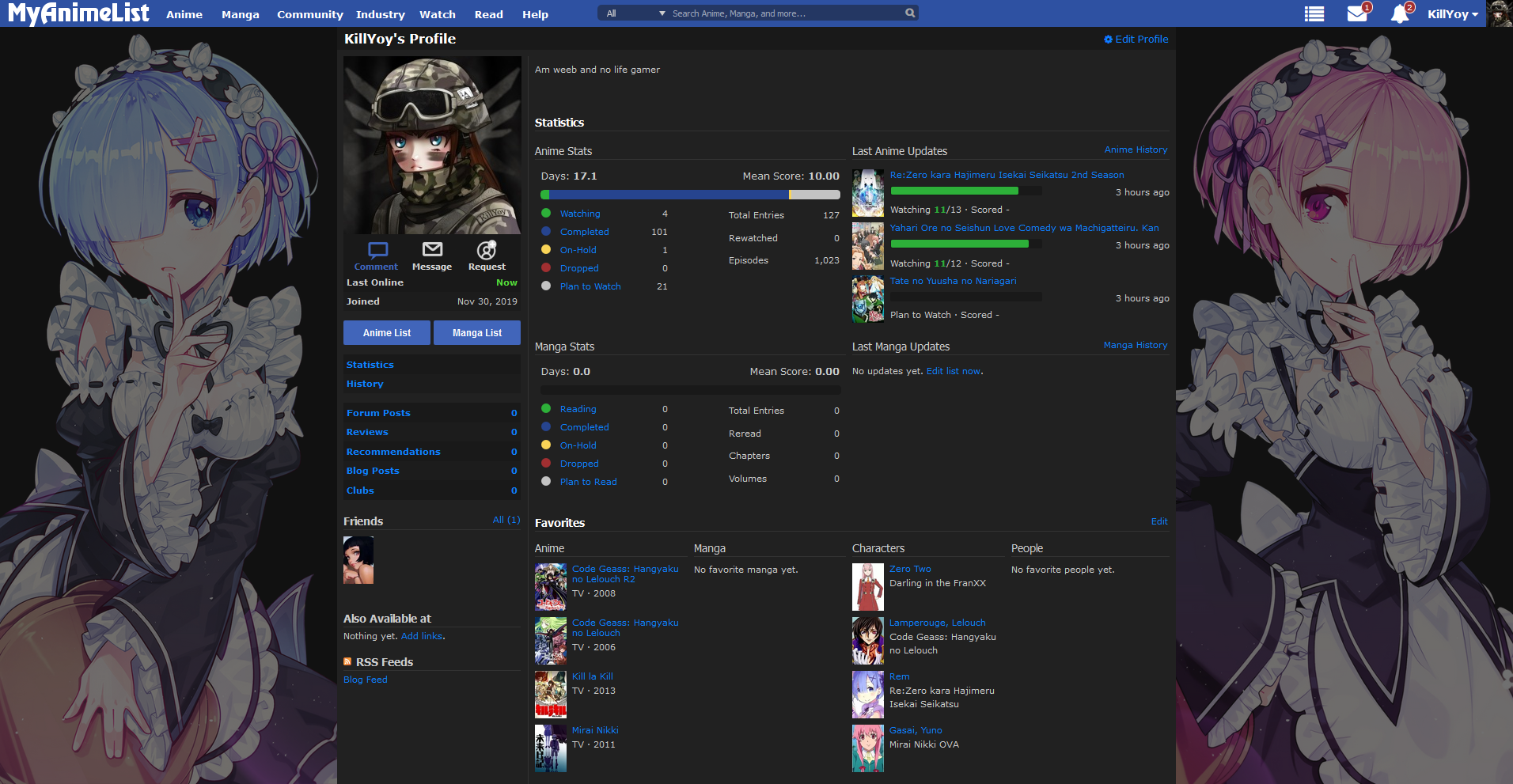How the website is displayed using MAL-Night: