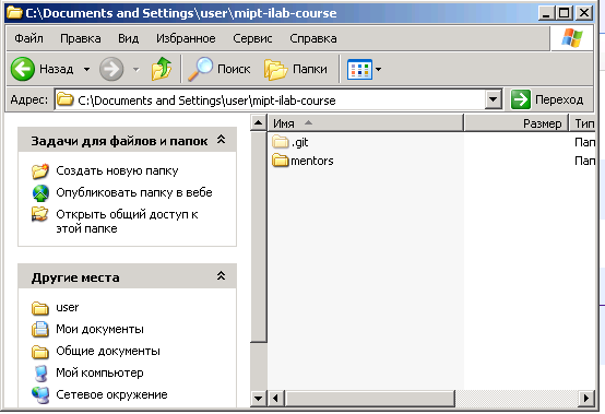 cd mipt-ilab-course. Вы должны находиться внутри файловой структуры проекта почти всегда, когда выполняете какие-то команды git, чтобы программа знала, с каким именно репозиторием вы работаете. -