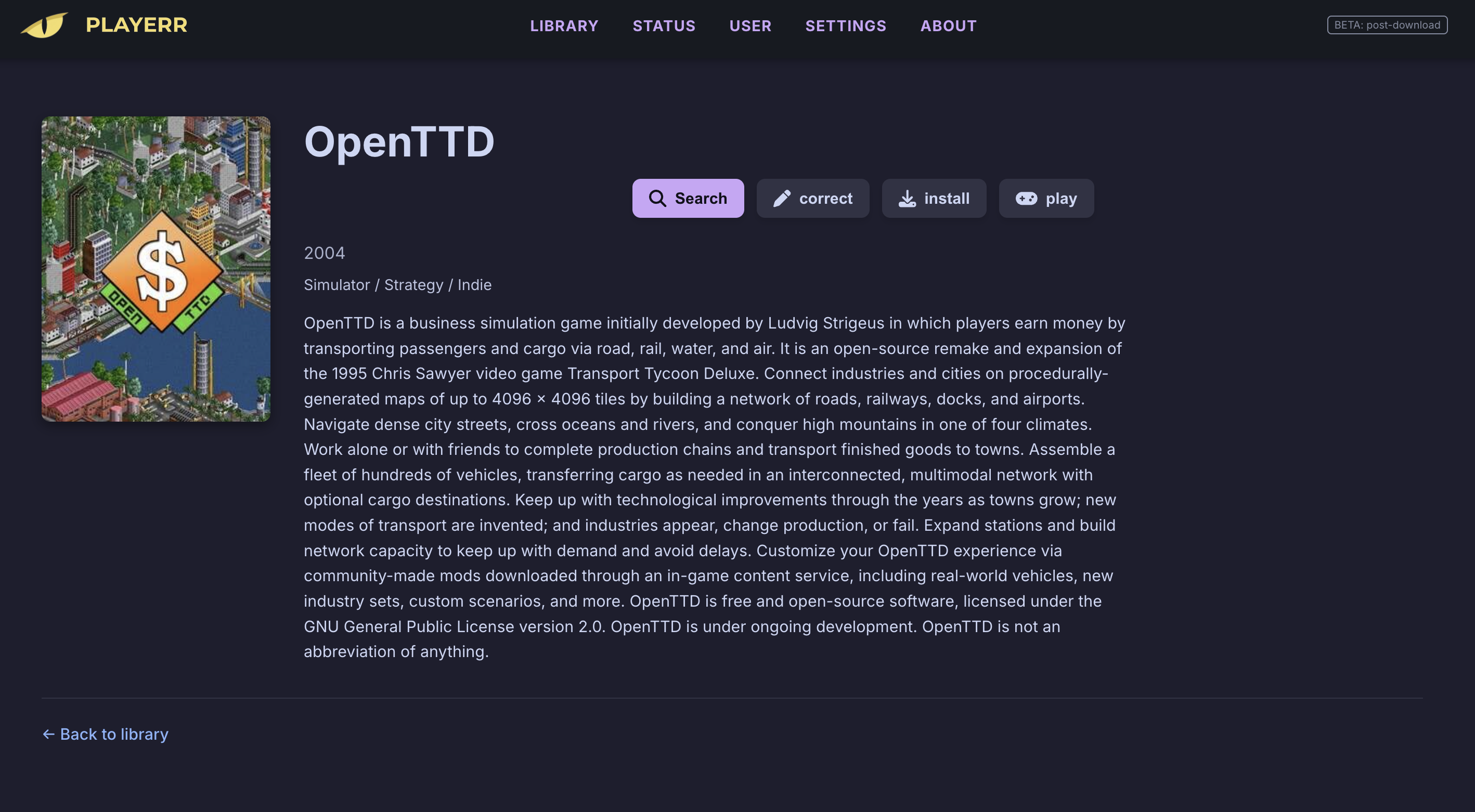 Inspired by the workflow of Radarr and Sonarr, Playerr is designed to be the definitive solution for video game enthusiasts who self-host their libraries. It bridges the gap between your local digital assets and the vast world of gaming metadata.
