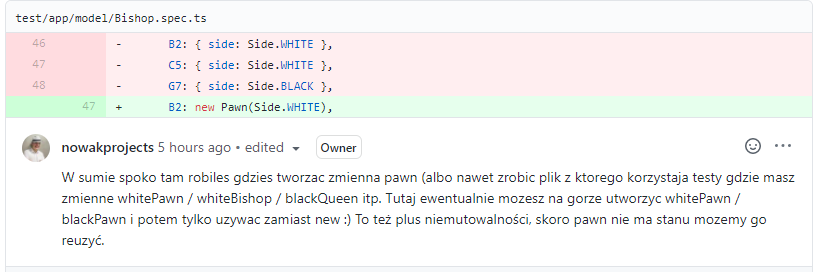 Żeby w testach wyrzucić te wszystkie tworzenia nowych pionków i innych w sumie figur do osobnego pliku np. gdzie są tworzone raz i stamtąd je wyciągać do testów :-)