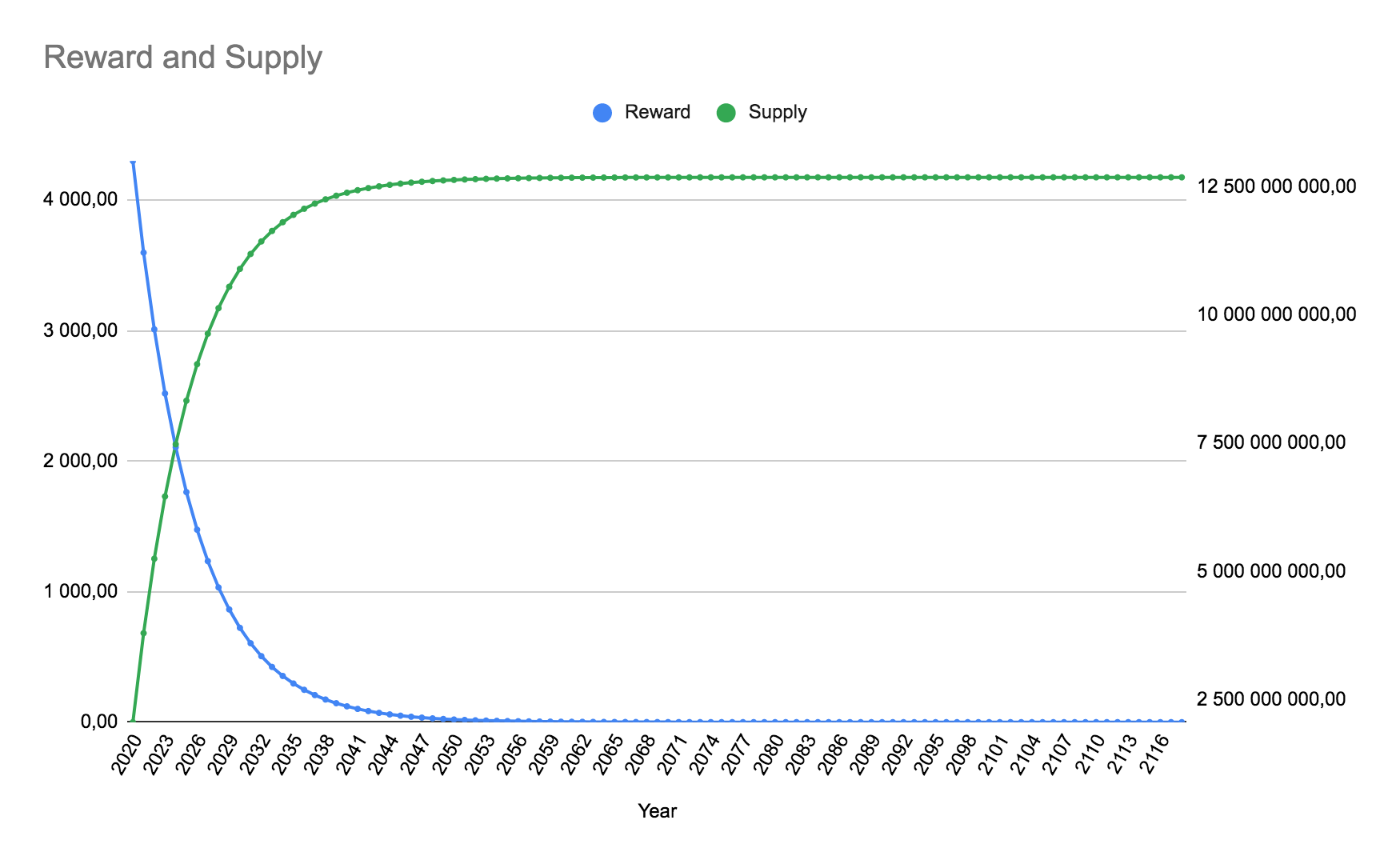 }Graph for reward and total supply: