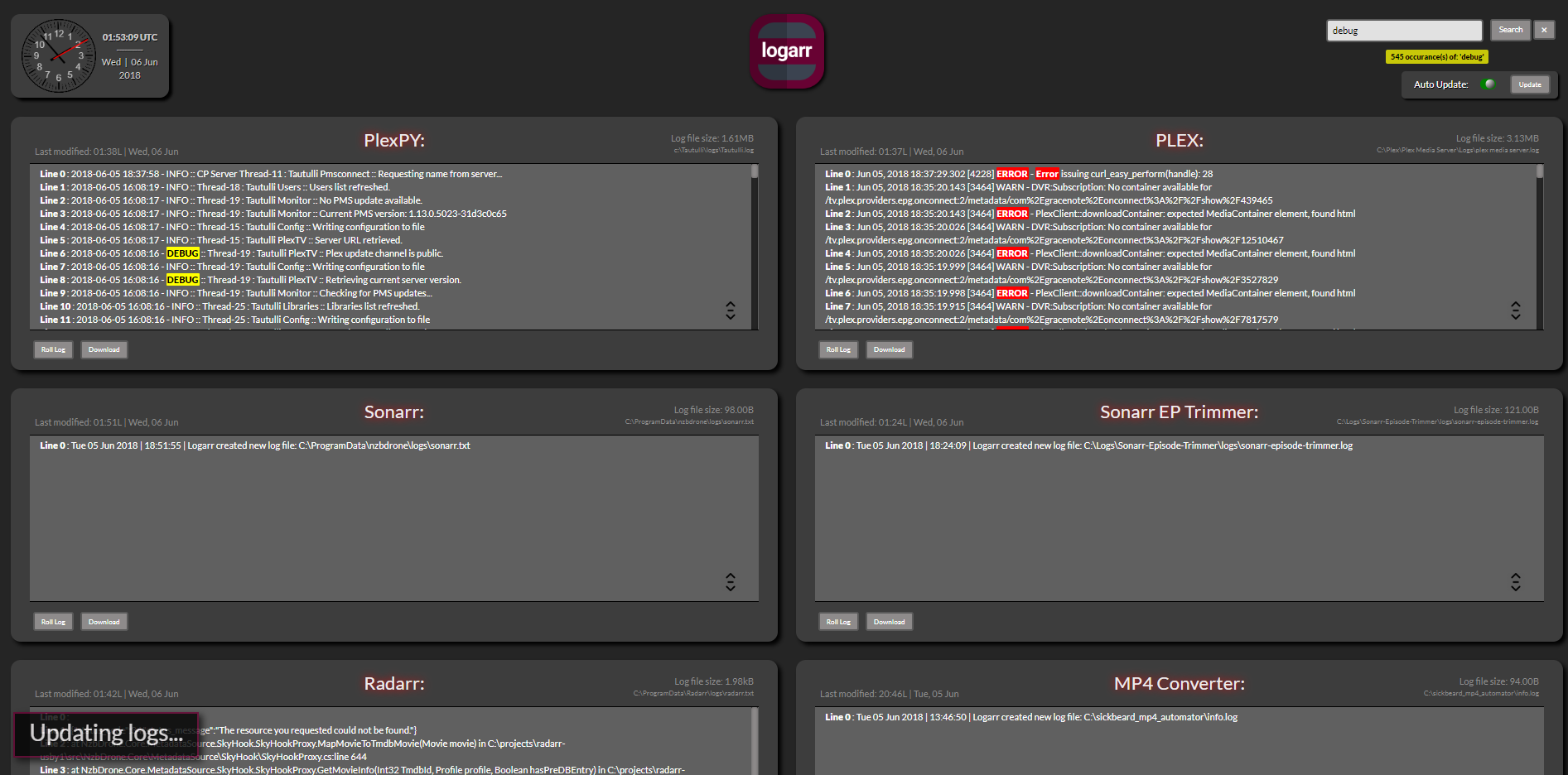 - Browse to <localhost\domain>/logarr/index.php (config.php will be auto populated in /assets/config/config.php)