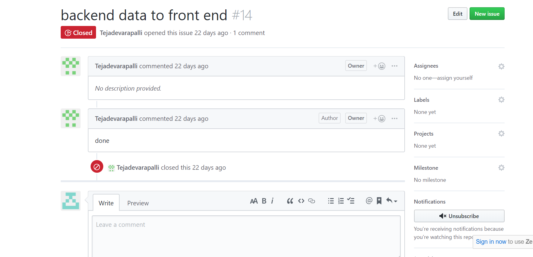 • Contributed in Comment feature implementation.