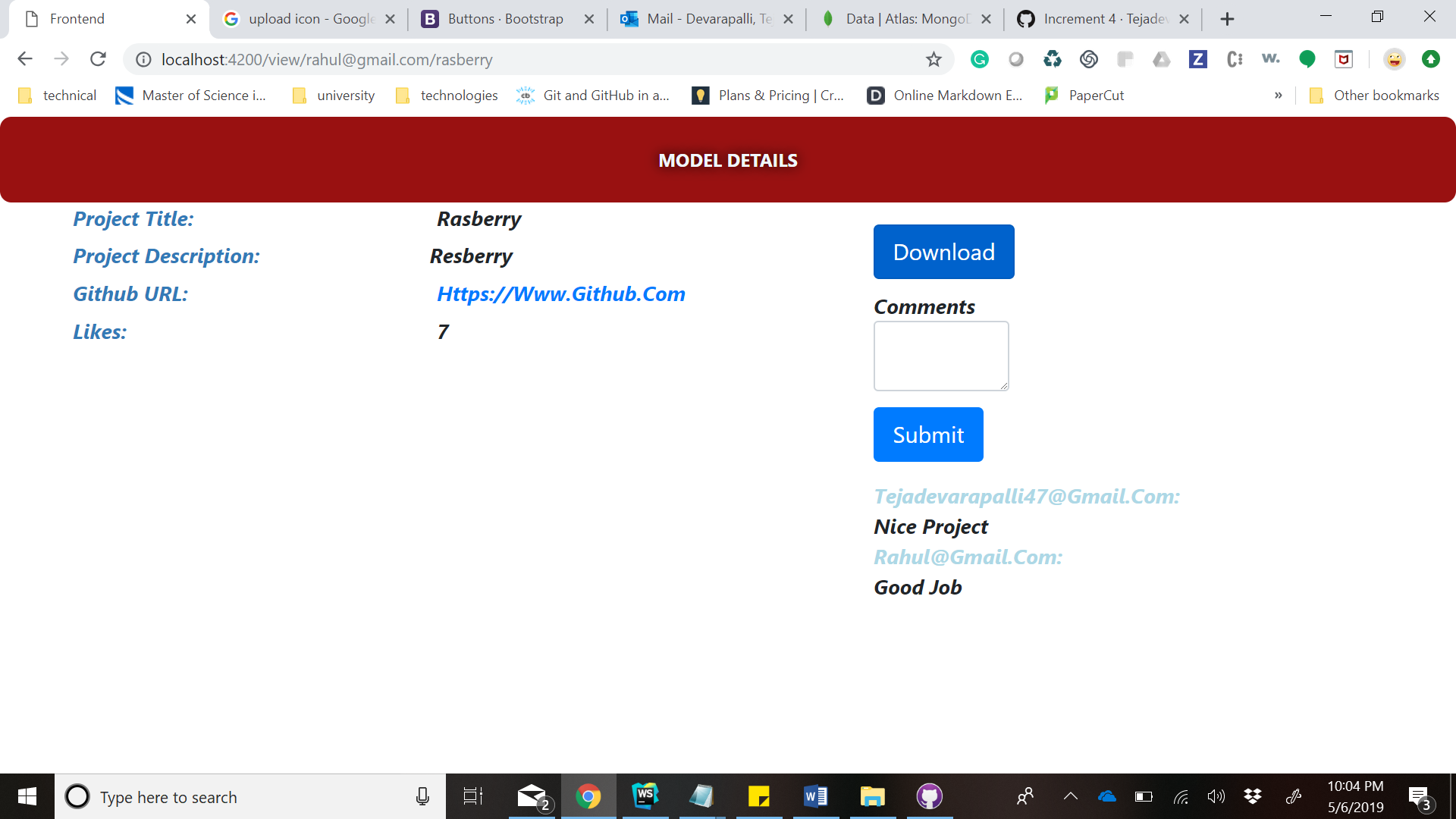 Technologies/Applications: • Angular 7, Mongo DB, NodeJS, Express JS