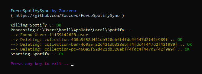 Simple tool which forces Spotify to sync it's playlists.