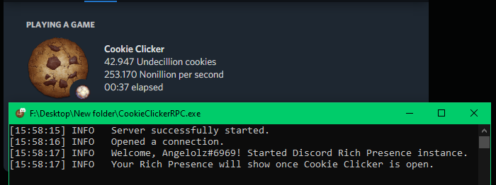 If everything was installed correctly, you should see the below output and your rich presence on Discord!