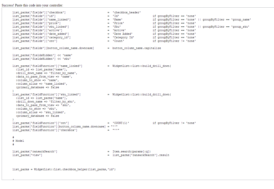 return render :inline => @output if params.key?('ajax')Next you will see this interface which will build some starter code for you: