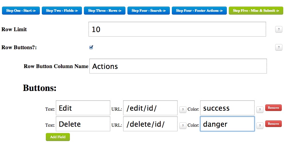 - Easily add row level buttons for each row