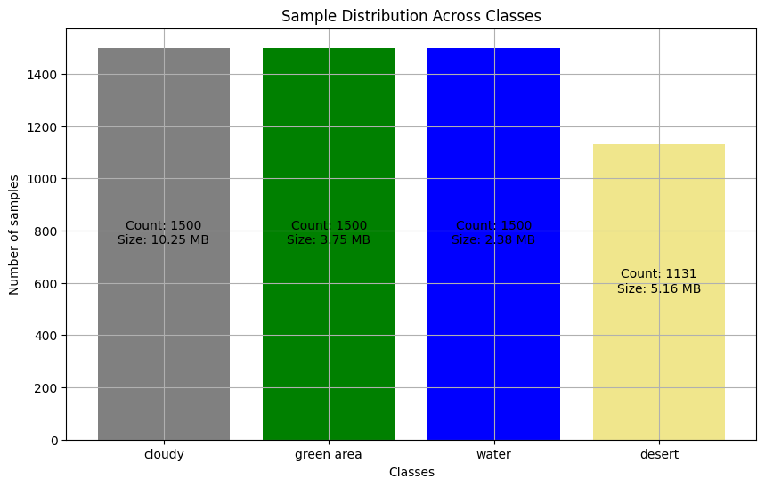 - We observed a class imbalance with 24.6% more data for classes other than 'desert'