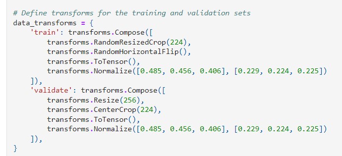 - Normalization of pixel values using pre-calculated values from the ImageNet dataset