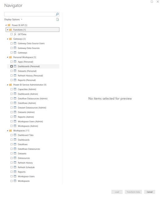 A Microsoft Power BI Data Connector or Power Query Connector for the Power BI REST API.