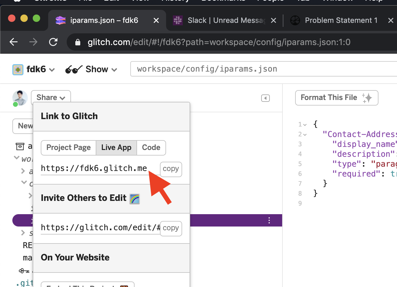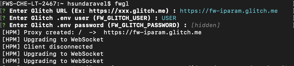 fwglinstalled on your machine - Note down the Glitch app URL. It has to be in this format