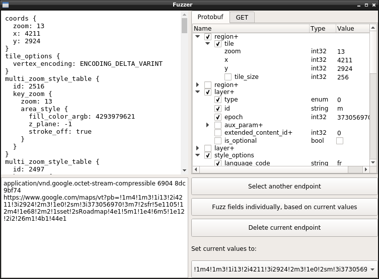 Editing, replaying and fuzzing data sent to Protobuf network endpoints, through a handy graphical interface that allows you to edit live the fields for a Protobuf message and view the result.
