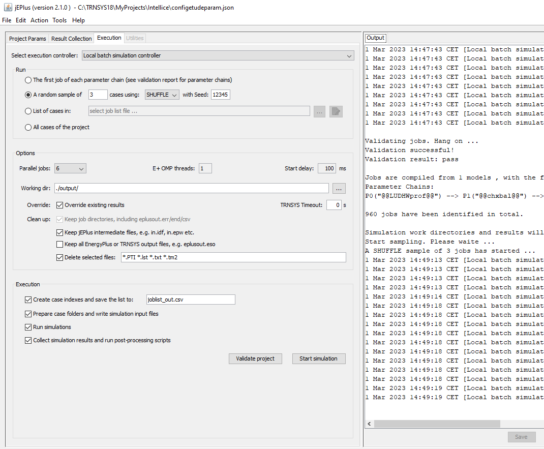 In my current TRNSYS project case, I don't need and don't want JEPLUS at post -processing stage to collect and to concatenate the output files (like trace of every timestep simulation results, heavy files), just want to leave the output files in simulation directories for later on post-processing by Scilab script . I want also to select the input files that I want to keep in simulation directories and those I want to delete, through the dedicated checkboxes and checklists : fine in execution tab.