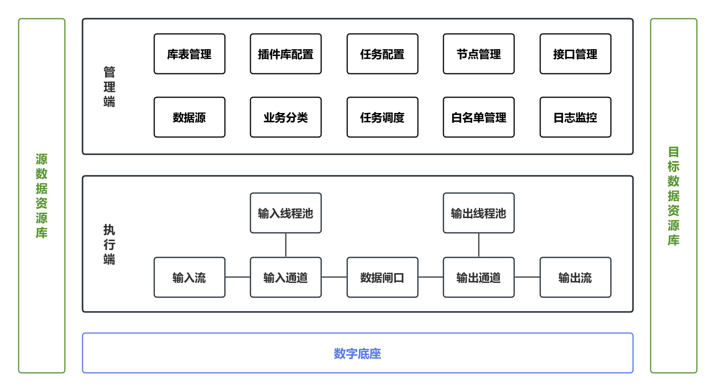 数据流引擎分为管理端和执行端,管理端具备可视化界面面向用户操作,执行端无界面无状态