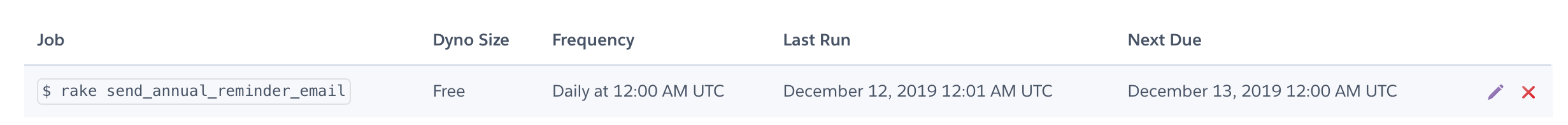 The script for sending these emails are located in lib/tasks/scheduler.rake, and the HTML templates for these emails are lcoated in app/views/user_mailer. Each type of email has three templates: one for the initial email, one for the first reminder after the initial, and one for the second reminder after the initial. The script should be scheduled to run daily on Heroku scheduler. For example, one of the tasks inside scheduler.rake is called send_annual_reminder_email; to schedule it daily, it should be added to Heroku scheduler like so: