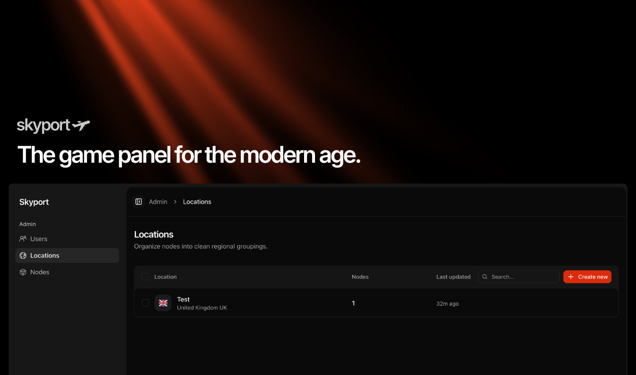 Skyport is an game server panel built for the modern age. It's a drop in replacement for Pterodactyl, Pelican and others - with loads of nice new features plus an entirely rebuilt (from the ground up!) codebase.
