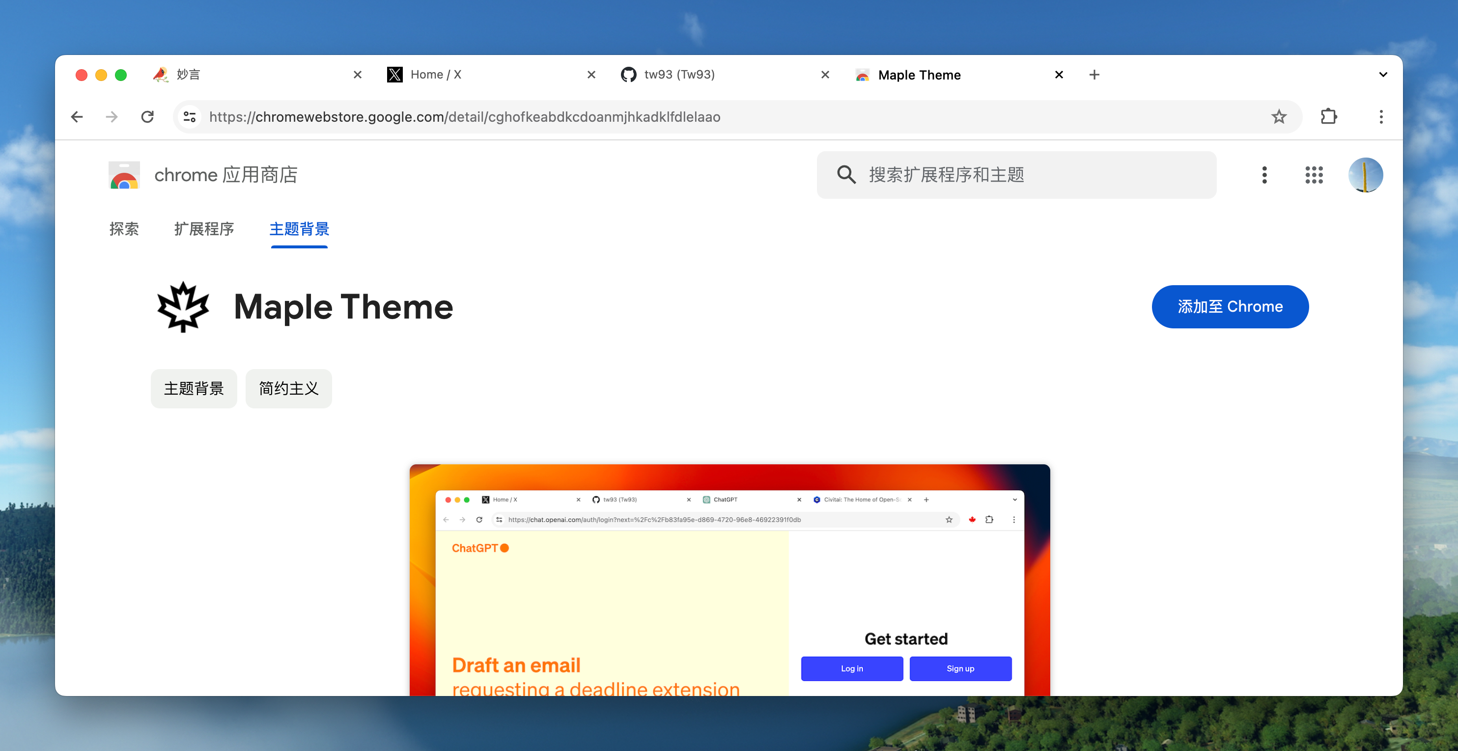 Since the default new theme of Chrome is not very appealing to me, I prefer a simple and clean effect, so I developed a Maple Theme on the side. It doesn't include any other messy colors, making your browser look very clean.