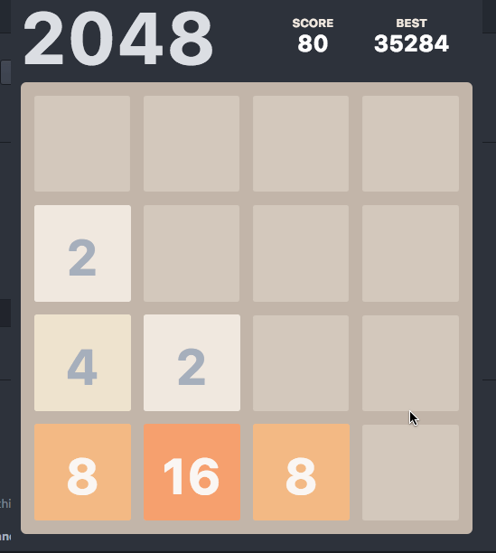 NOTE: all the directions arrows can cause the cursor move around the editor view, so they are disabled in atom-2048, you can use direction keys, WASD keys or vim keys to move the tiles!