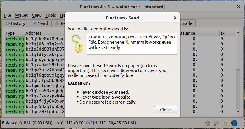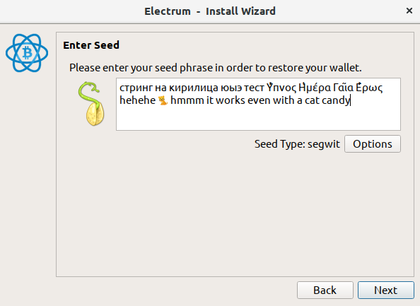Please enter the seed to be amended: стринг на кирилица юыэ тест Ὕπνος Ἡμέρα Γαῖα Ἔρως hehehe 🐈 hmmm it works even with a cat