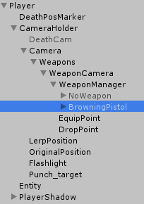 - Weapons (Empty Game Object to contain weapon system scripts and setup)