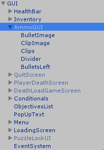 In your GUI Object add an empty gameobject that will contain all of your GUI elements for the weapon system like the following:
