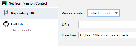 To fetch existing Mbed projects from Git or Mercurial the mbed import functionality has been integrated into CLion.