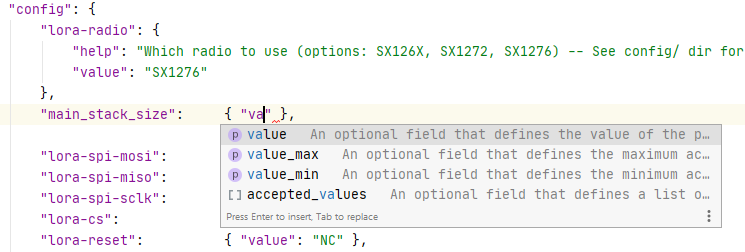 The plugin ships with a schema that provides Code Completion, documentation and checks for validity