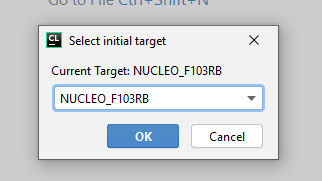 After pressing the create button a new window will open and the plugin starts downloading the newest Mbed OS version from the Github repo. As soon as the download has finished a new dialog will appear asking which Mbed Target should be used. This option can be changed later at any time.