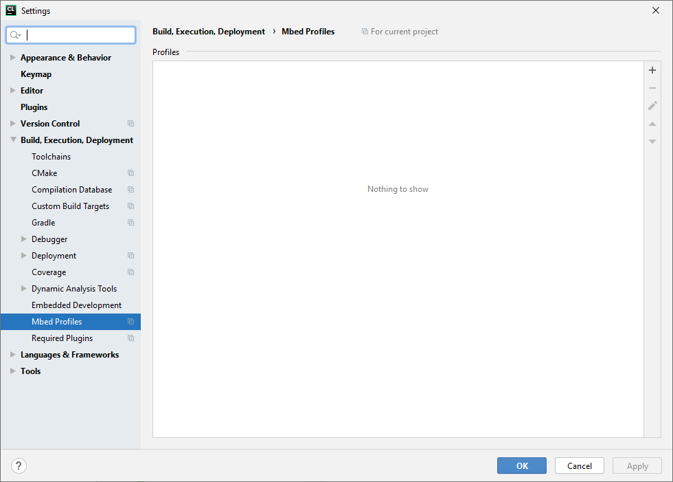 and go to Build, Execution, Deployement -> Mbed Profiles: